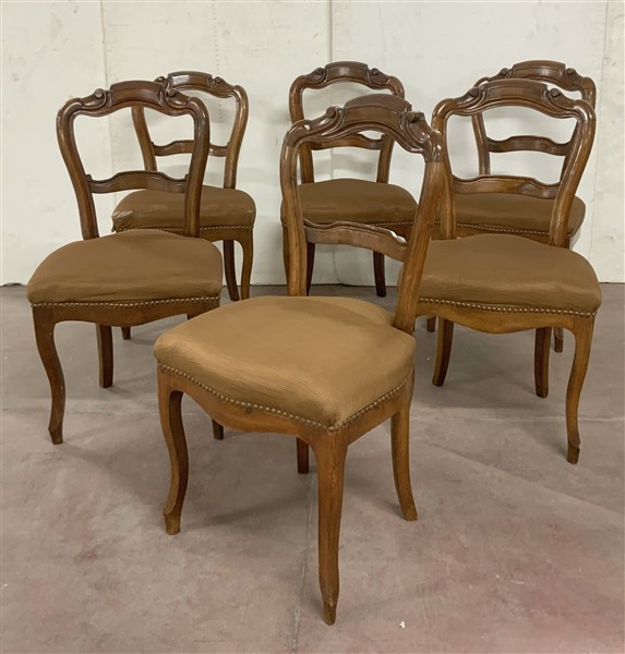 Gruppo di sei sedie "Luigi Filippo" in noce con schienali a giorno sagomati gam