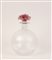 BOTTIGLIA IN VETRO TRASPARENTE manifattura di Murano con tappo in vetro policromo nella tonalità del rosa a motivo floreale h. 21 cm.
