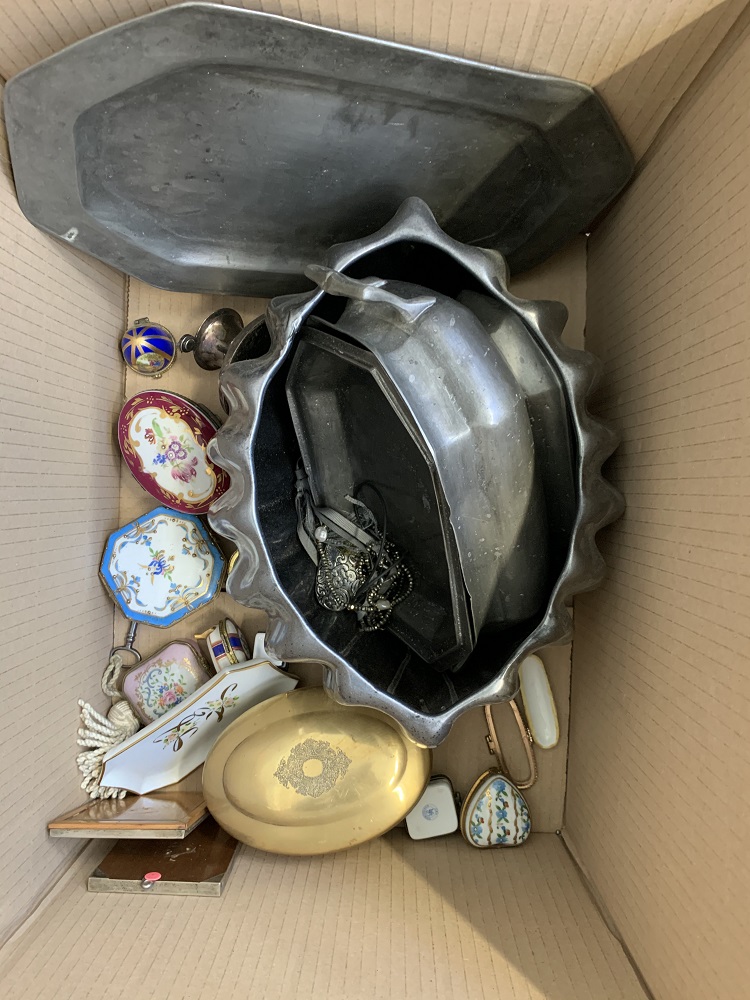 Cartone contenente numerosi oggetti di diverso uso e decoro (difetti)