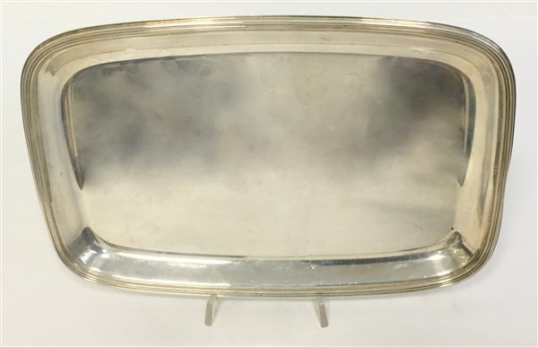 Vassoietto in argento rettangolare, titolo 800 (cm 29x19) (g. 300 ca)