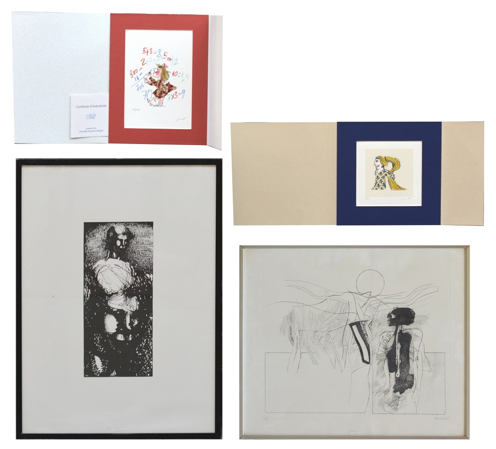 Lotto di quattro grafiche di autori e dimensioni differenti, due in cornici (li