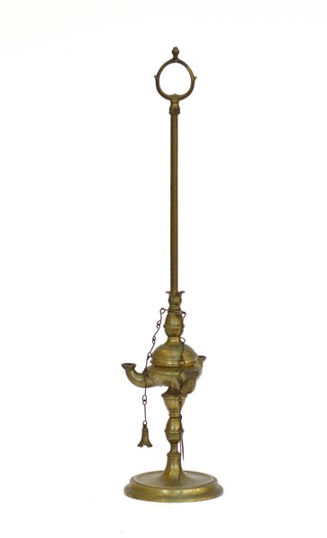 Lampada fiorentina in ottone con catenelle e accessori (h cm 56) (difetti)
