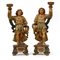 Coppia di figure reggi cero in legno scolpito e dipinto in policromia. Secolo X