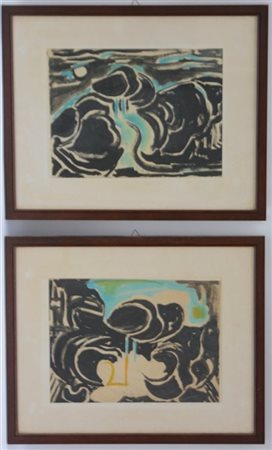 Luigi Piciotti "Senza titolo" 1954 due tecnice miste su carta xm 23x32 Cad, firm