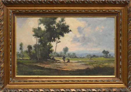 C. Follini "In campagna" dipinto ad olio (cm 24x44) Firmato in basso a sinistra.