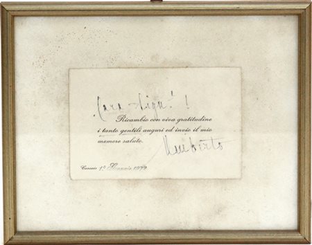 Biglietto di ringraziamento datato 1 gennaio 1972 autografato da Umberto II di Savoia, in cornice (cm 26x20)