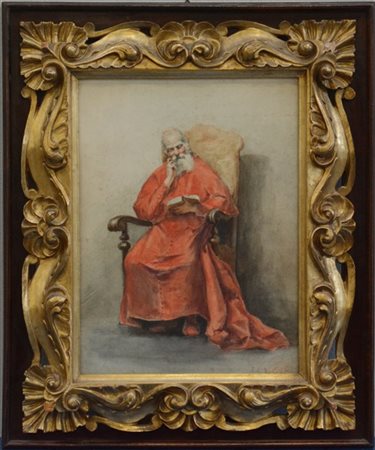Jean-Georges Vibert "In lettura" acquerello su carta (cm 40x30) Firmato in basso