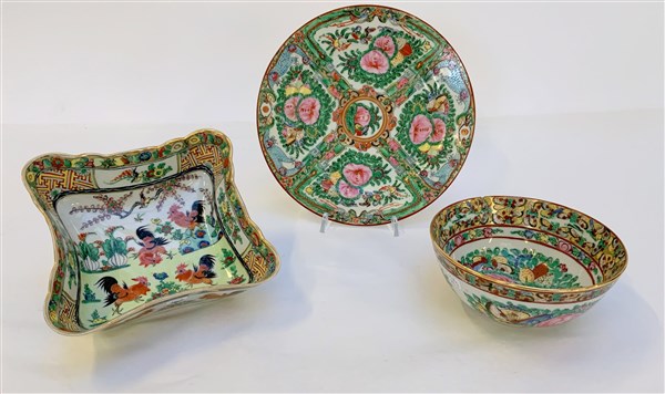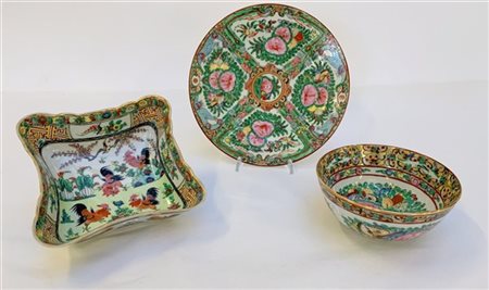 Lotto composto da due ciotole e un piatto in stile canton (difetti)
