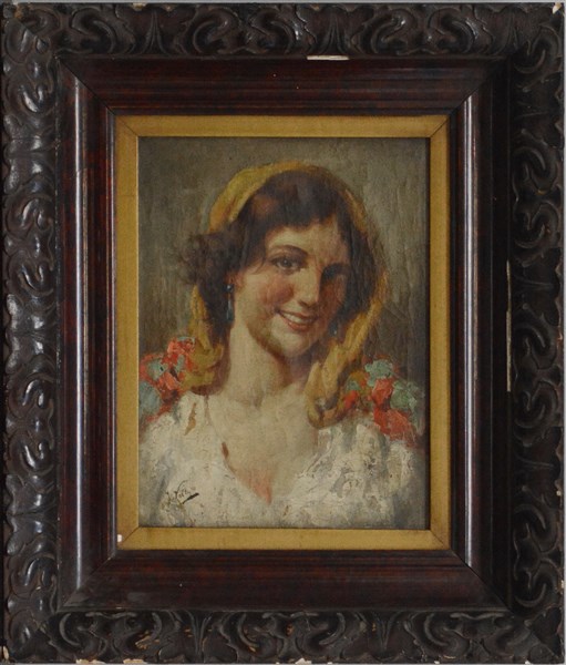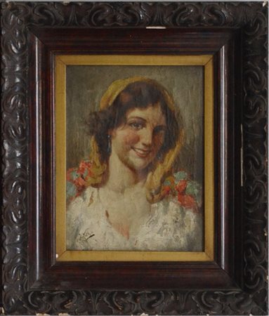 Firma indecifrata "Ritratto" olio su tela (cm 40x30) Firmato in basso a sinistra. In cornice