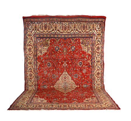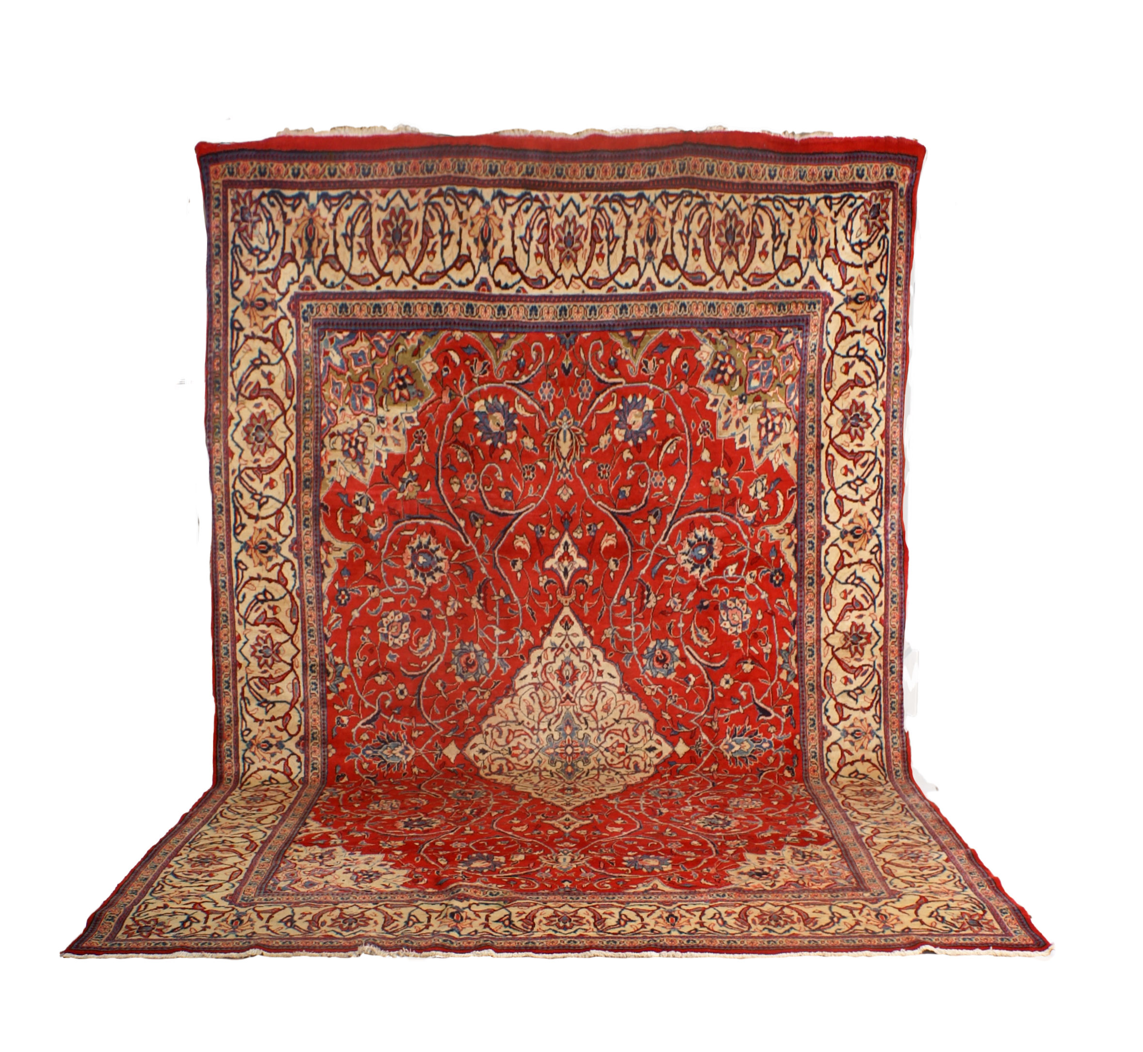 TAPPETO manifattura orientale su fondo rosso disegno floreale 405x288 cm.