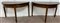 Coppia di antichi mezzi tavoli a tre gambe rastremate (ciascuno cm 129x79x64) (difetti e restauri)