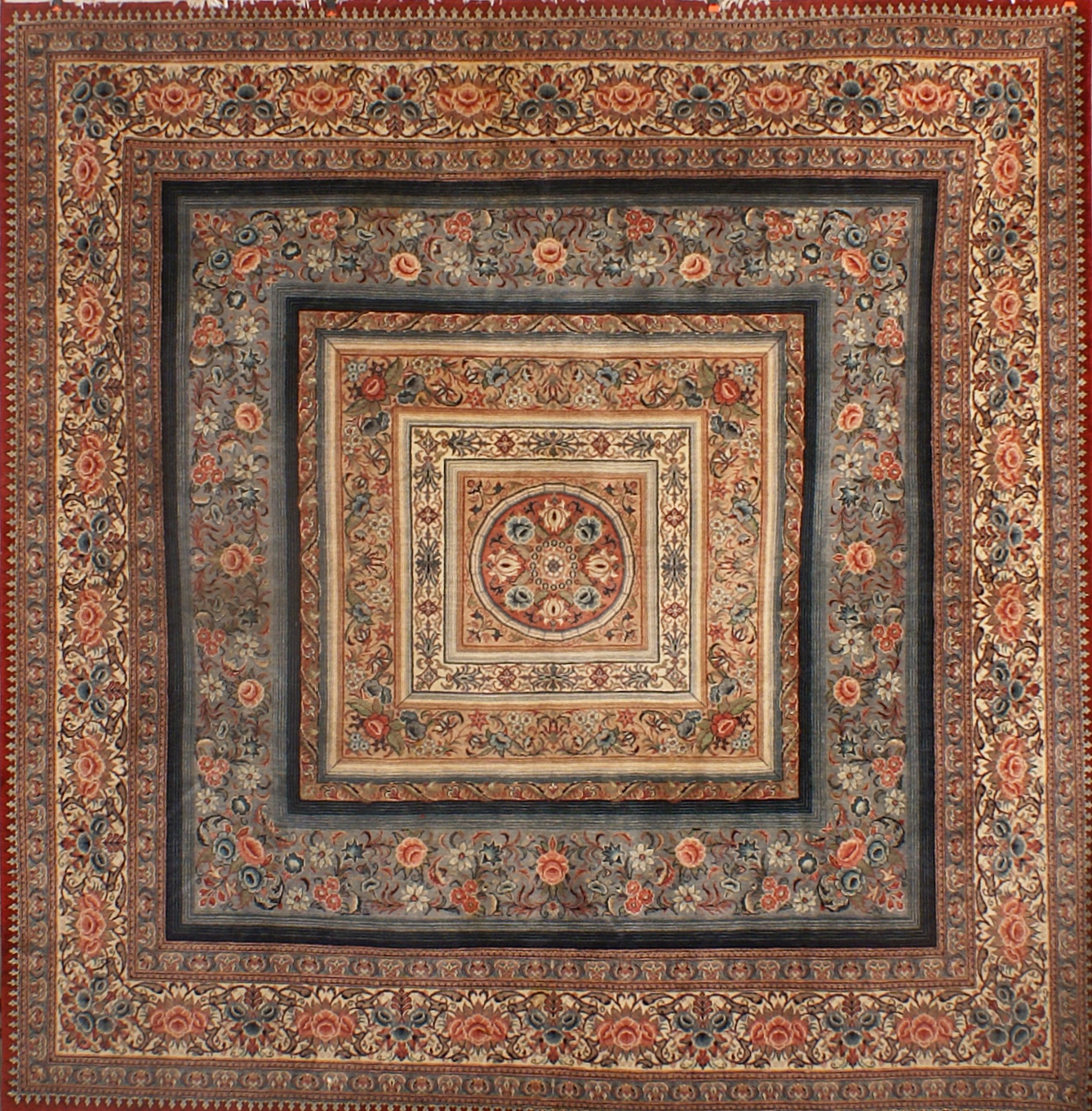 TAPPETO Persia lana kork su trama in cotone, disegno floreale entro riserve quadrate 261x254 cm.