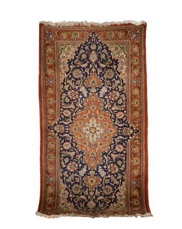 TAPPETO manifattura orientale su fondo rosso e blu 203x101 cm.