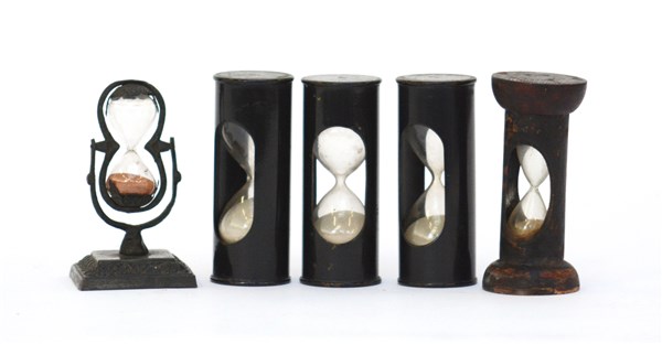 Lotto composto da cinque clessidre di epoca e materiali diversi (difetti)
