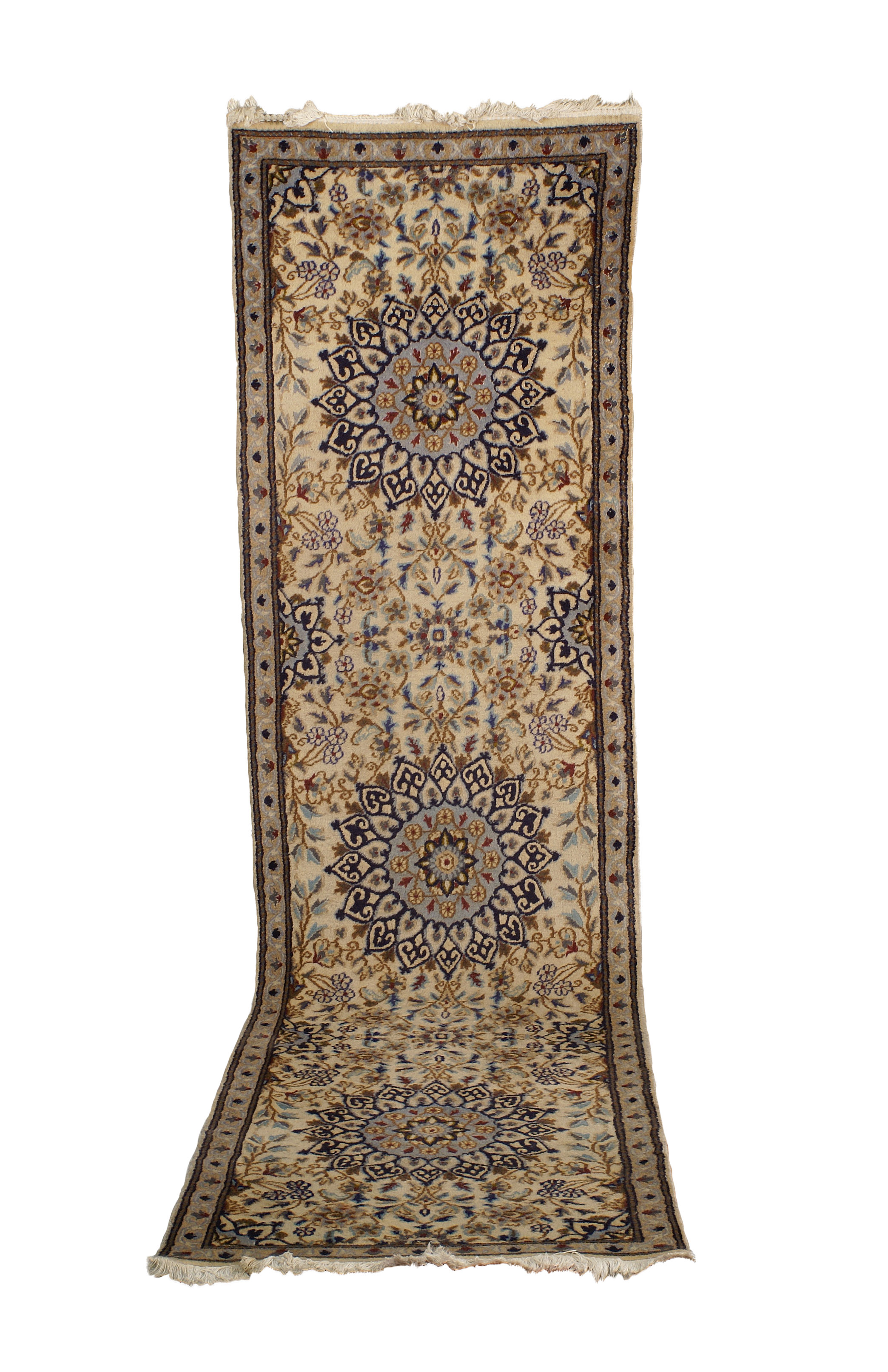 TAPPETO GUIDA manifattura orientale disegno geometrico su fondo chiaro 225x75 cm.