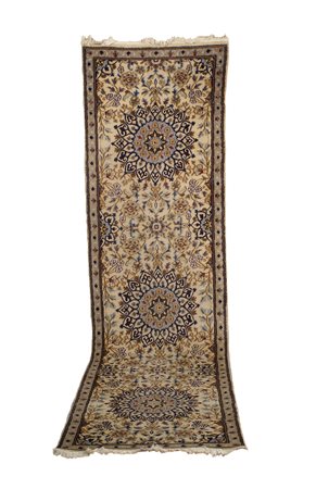 TAPPETO GUIDA manifattura orientale disegno geometrico su fondo chiaro 225x75...