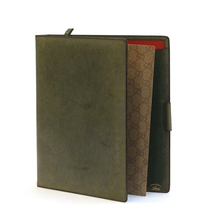Porta rubrica con anelli in cinghiale verde oliva con interno in saffiano rosso (difetti e mancanze)