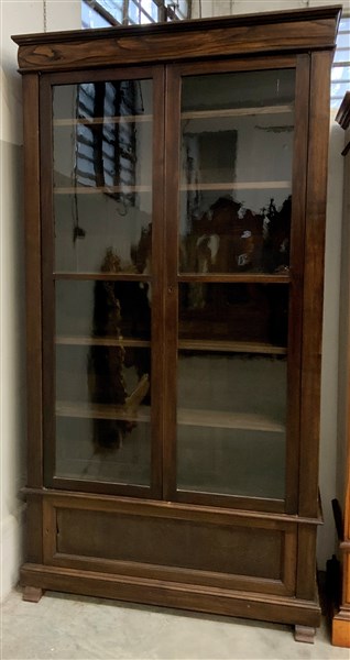 Mobile vetrina a due ante a vetri ed una in legno nella base, piedi mossi (cm 130x250x48)