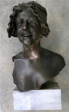 Ignoto napoletano del XX Scolo "Mezzobusto femminile" scultura in bronzo (h. cm 50) Poggiante su base in marmo