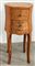 Piccolo comodino tondo lastronato in radica di noce a due cassetti sul fronte,