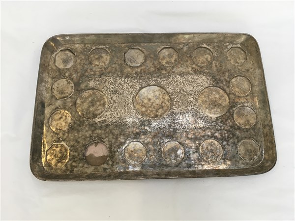 Lotto composto da un grande vassoio in metallo argentato e cifrato e un vaso po