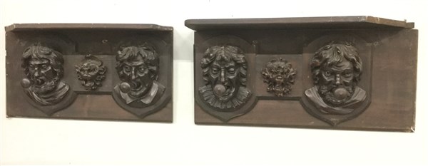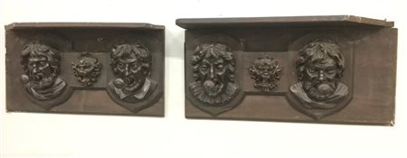Lotto composto da due appendiabiti decorati a mascheroni (cm 70x36)