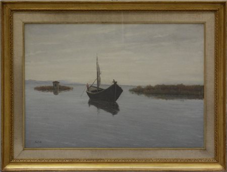 "Pescatori" olio su tela (cm 70x100) Firmato in basso a sinistra. In cornice dorata