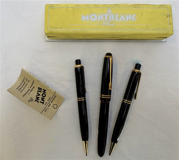 Montblanc, lotto composto da due portamine ed una penna stilografica vintage, i