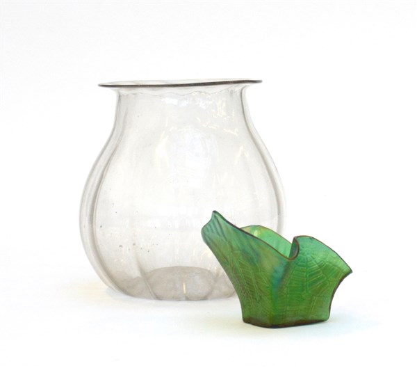 Manifatture diverse lotto composto da un vaso in vetro incolore di Murano e un vasetto iridescente di Manifattura francese