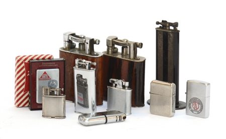 Lotto composto da dieci accendini di epoche e materiali diversi (difetti)