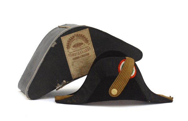 Feluca da ufficiale delle Regia Marina in scatola di trasporto con etichetta di "Gennaro Coruzzolo, Napoli Via Roma". Fine secolo XIX