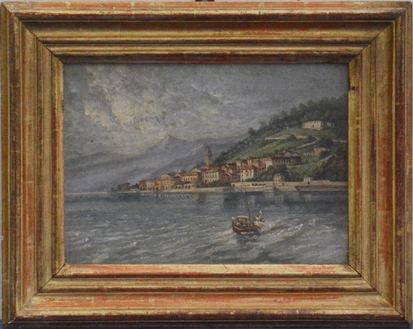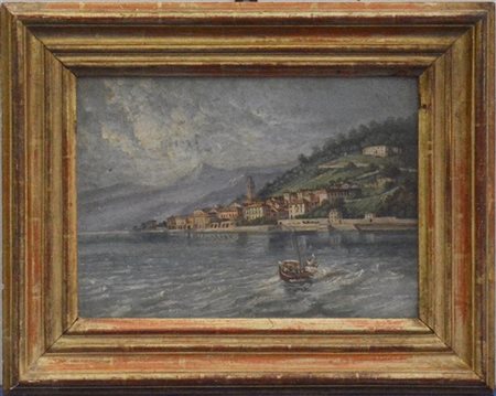 Scuola lombarda XIX Secolo "Tempesta sul Lago di Como" olio su compensato (cm 2