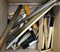 Cartone contenente numerosi bocchini di epoche e materiali diversi, alcuni in a