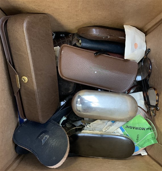 Cartone contenente numerosi occhiali di diversa epoca (difetti)