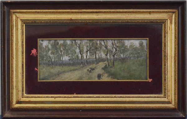 Gino Tommasi "Cinghiali nel bosco" olio su cartone (cm 12x30) Firmato in basso a