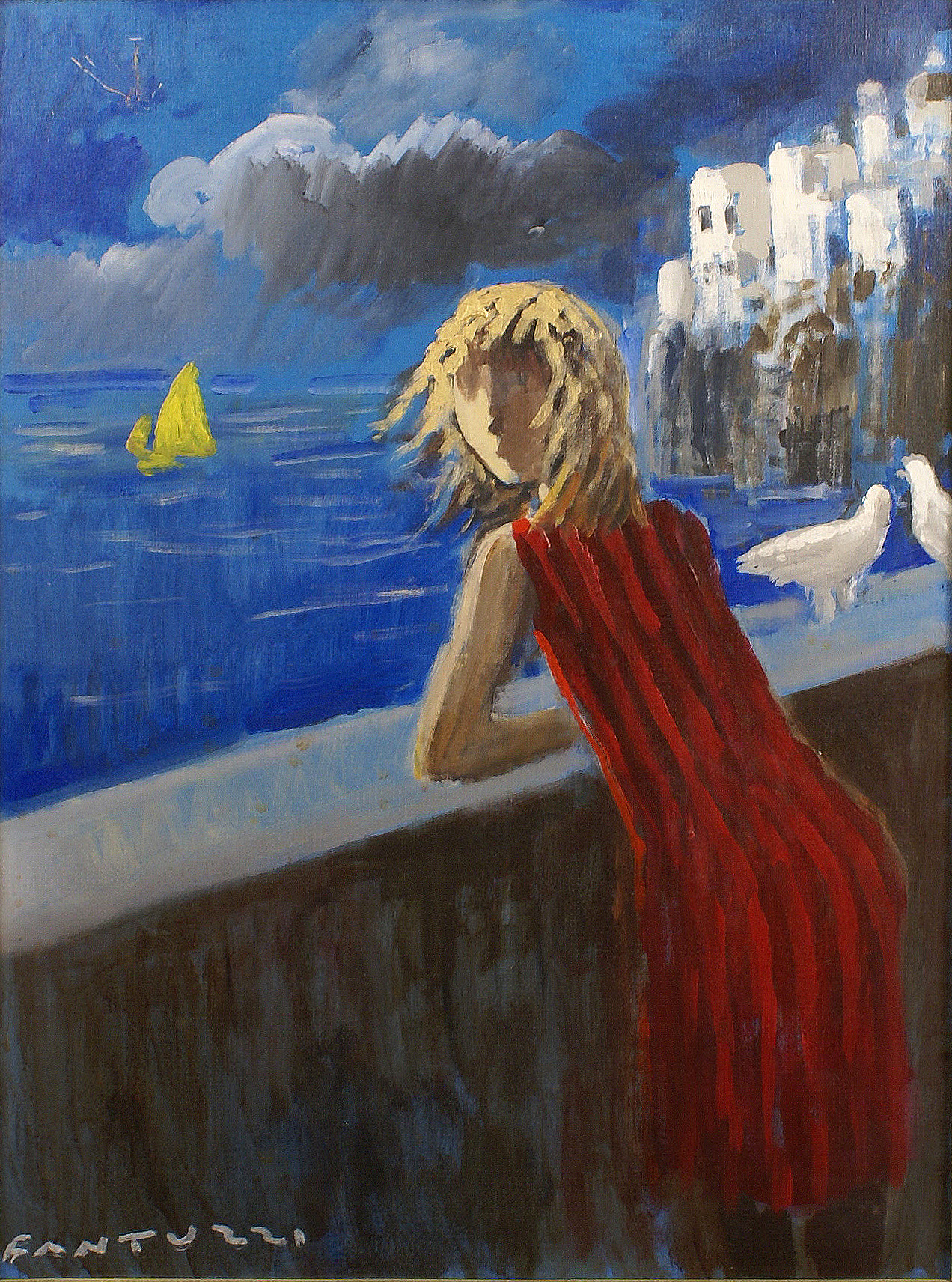 ELIANO FANTUZZI Modena 1909 - Verona 1987 Senza titolo olio su tela, anno 1984, firmato in basso a destra e sul retro, certificato su foto Catalogazione Eliano Fantuzzi, codice A-1, n. 1-6-190, autentica su foto, entro cornice 80x60 cm.