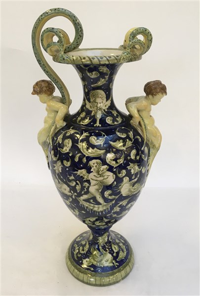 Lotto composto da un candeliere in bronzo e un vaso in ceramica decorato in policromia dell'inizio secolo XX (difetti e mancanze)