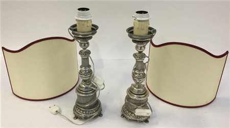 Coppia di lampade in metallo argentato con fusti scanalati (h. cm 35)