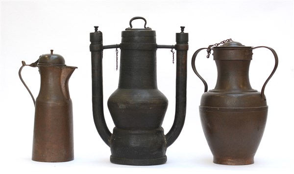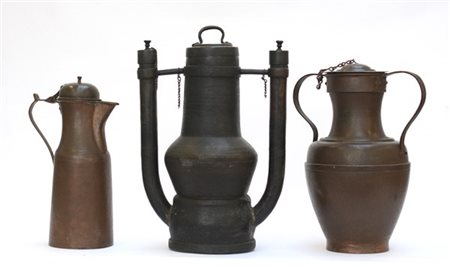 Lotto composto da tre oggetti in rame e metallo di epoche e forme diverse