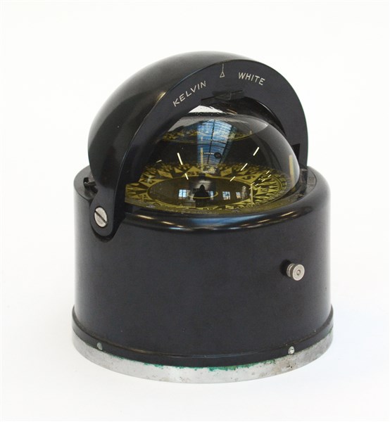KELVIN WHITE Bussola di bordo sotto liquido in bachelite e vetro. Misure h. cm