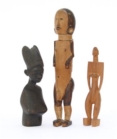 Arte africana, tre figure in legni diversi raffiguranti un nudo femminile e due