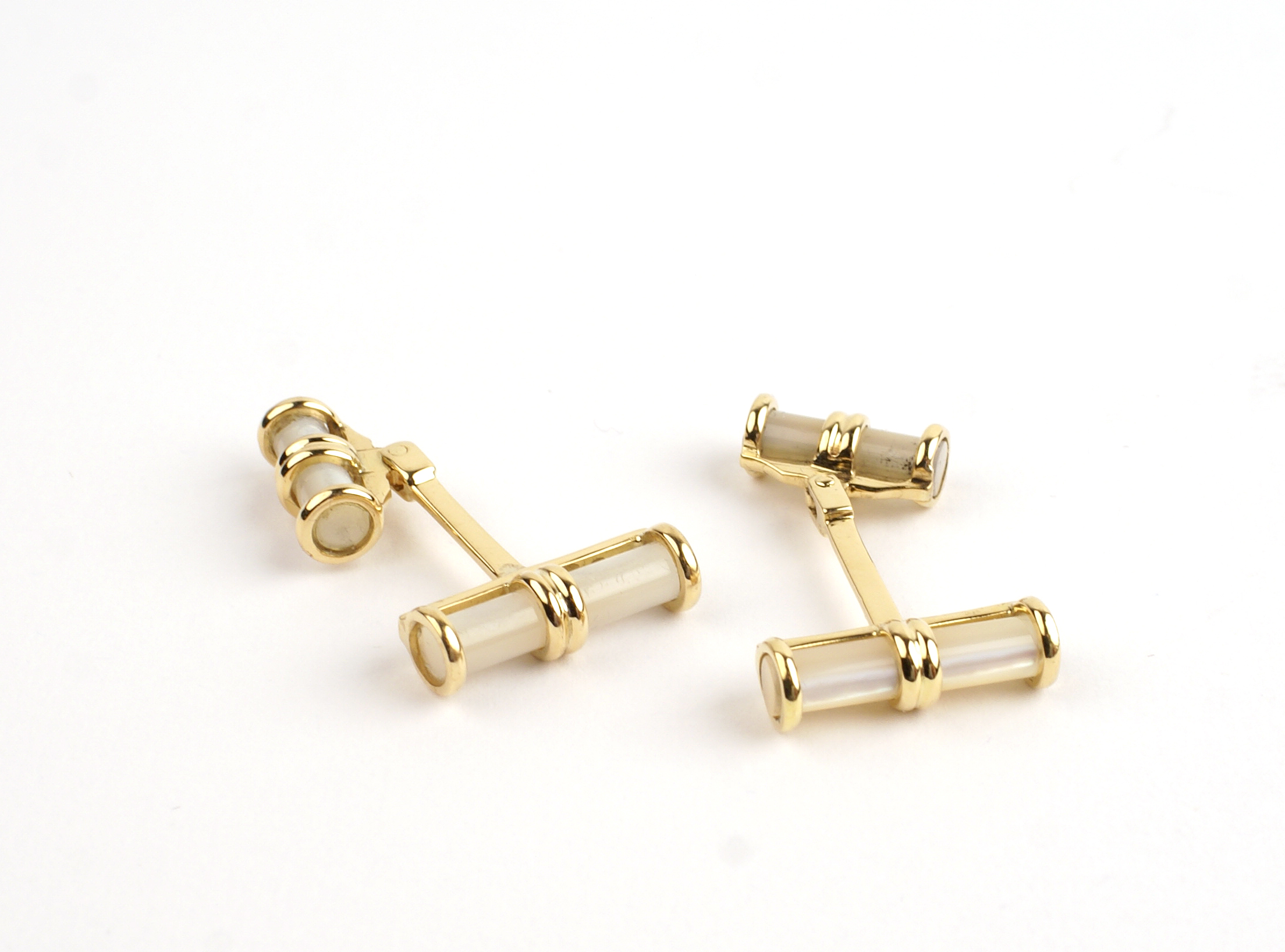 GEMELLI IN ORO GIALLO 18KT E MADREPERLA tagliata a sezione di cilindro 11 mm.