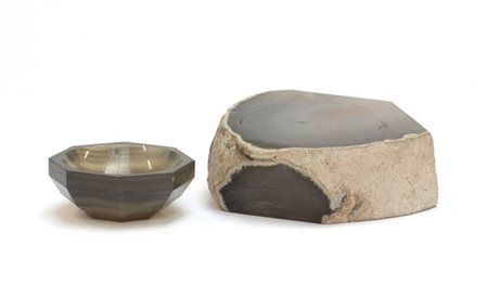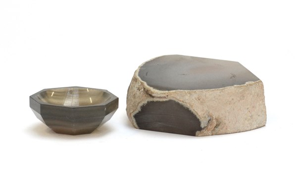 Lotto composto da un posacenere e un frammento di minerale in pietre dure (misure diverse) (difetti)