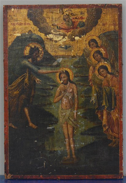 Icona del secolo XIX raffigurante il "Battesimo di Cristo" (cm 49x33) (difetti e mancanze)