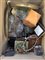 Cartone contenente numerosi oggetti di diversa epoca, materiale e decoro (difetti)