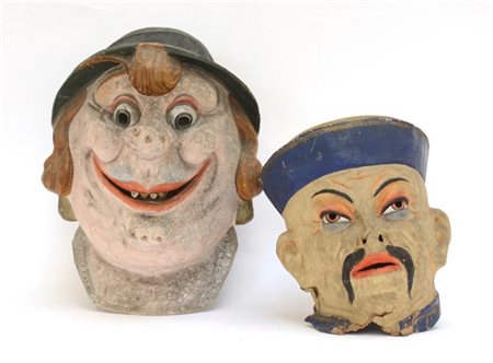 Lotto composto da due maschere in cartapesta raffiguranti mandarino e volto gol