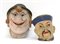 Lotto composto da due maschere in cartapesta raffiguranti mandarino e volto goliardico (difetti)