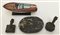 Lotto composto da un modellino di motoscafo Riva, un set da scrivania in marmo nero e un centrotavola in peltro decorato a motivi Liberty (misure differenti) (difetti)
