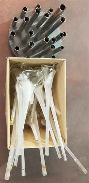 Parti di lampada a sospensione con struttura in acciaio cromato e pendenti a fo