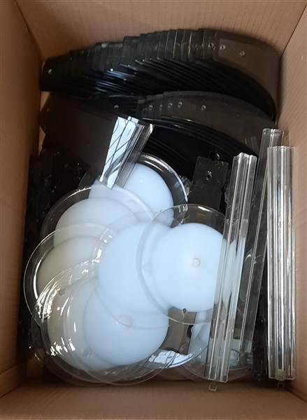 Lotto composto da tre cartoni contenenti strutture di lampade a sospensione e p